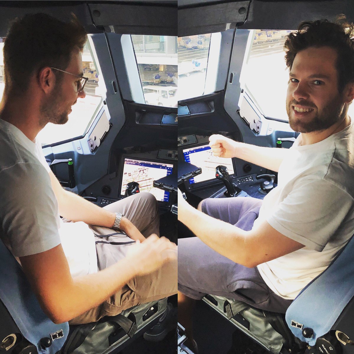 Florentin und Stefan im Cockpit eines Flugzeugs. New York, 2019. https://twitter.com/daspodcastufo/status/1148452785303822336