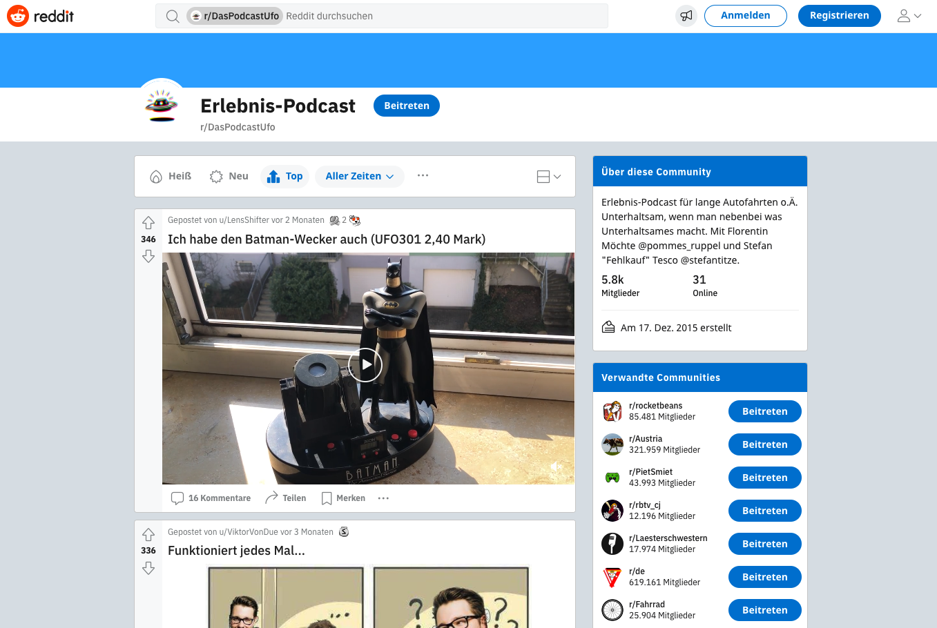 Screenshot des PUFO-Subreddits https://www.reddit.com/r/DasPodcastUfo