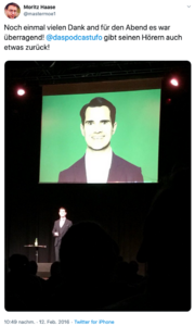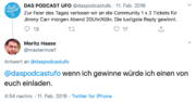 18:58, 18. Feb. 2020 JimmyCarrMoritzTweet.png (Datei) 542 KB Moritz veröffentlicht ein Foto aus der Show 1